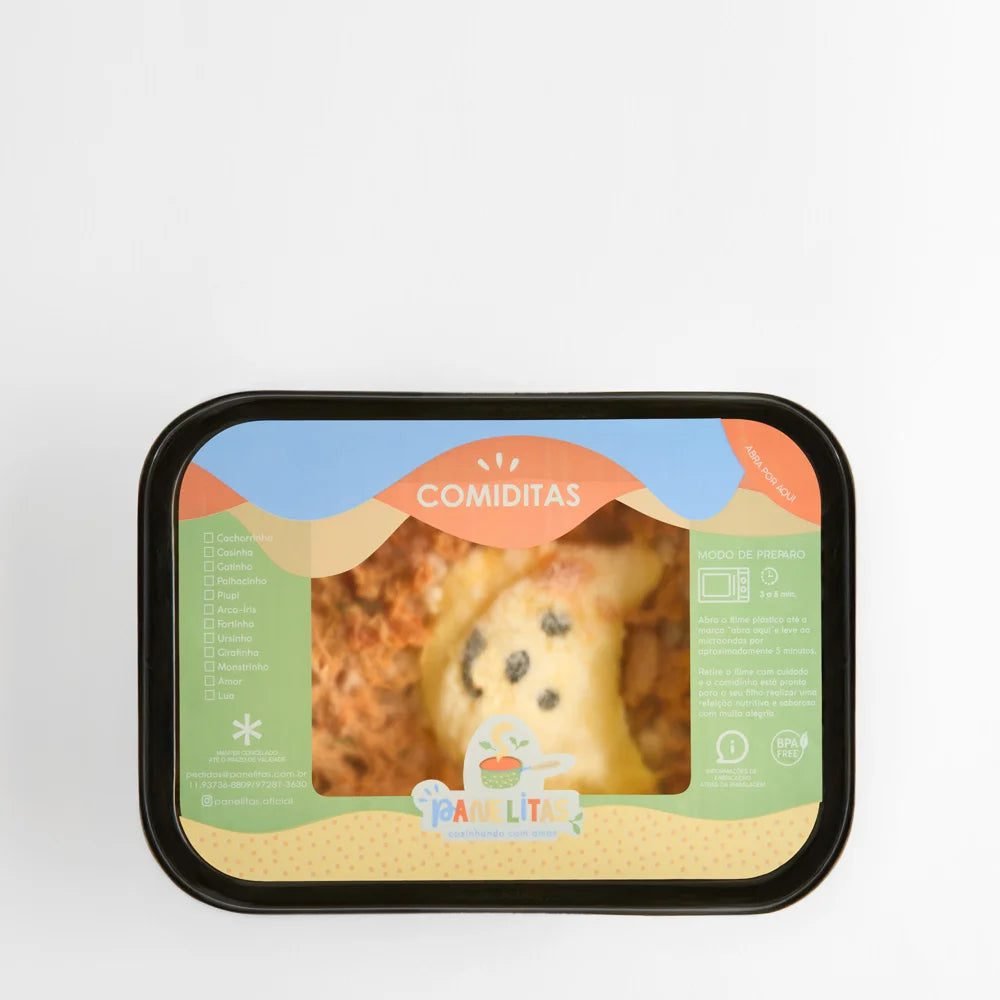 Feito com arroz integral, frango desfiado e creme de milho. Muito nutritivo e 100% orgânico, ele ainda traz diversão para hora das refeições.